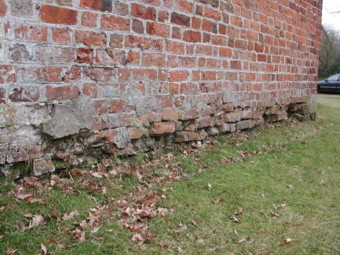 starken Schäden am Mauerwerk, die durch Feuchtigkeit entstanden